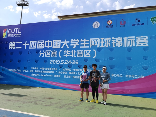 2019年5月24日-26日,第二十四届中国大学生网球锦标赛分区赛(华北赛区)在北京化工大学举行。北京理工大学网球队在5月11日举行的首都高校网球联赛春季团体赛取得季军,挺进本次中国大学生网球(华北赛区)锦标赛。王力老师带队下,章译匀、罗玉珍、张珂嘉组成的北京理工大学女队出征比赛,经过3天的激烈角逐,最终在参赛34所学校中位列团体第6名 ,取得优异成绩。