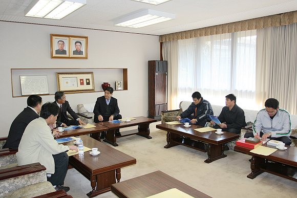 我校足球队此次到日本参加东亚大学生足球邀请赛,受到了在日本的朝鲜大学校的热情款待,比赛期间,代表团团长、我校副校长赵显利率随行教师专程访问了朝鲜大学校,与朝鲜大学校校长张炳泰先生进行了友好座谈。