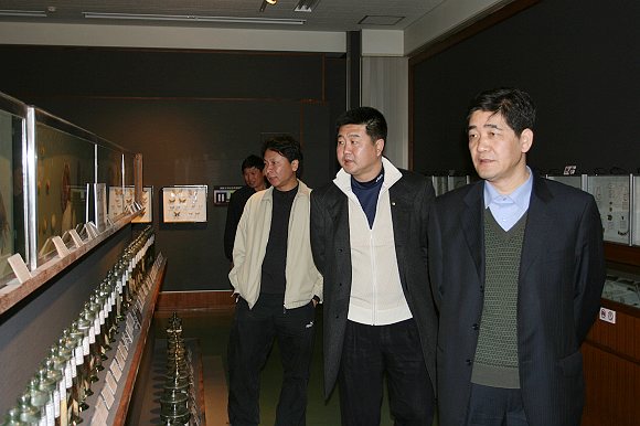 赵显利副校长一行在参观朝鲜大学校的自然博物馆。