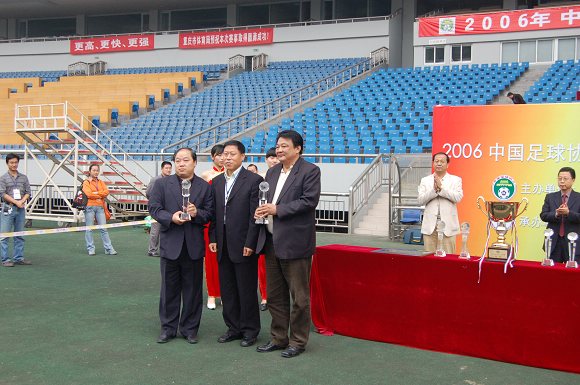 最后由中国足协纪律委员会主任马成全为我校足球队颁发金牌。