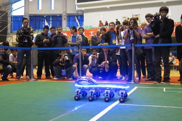 为加强中俄两国大学生的科技与文化交流,提升两国大学生的科技创新能力,增进"中俄工科大学联盟"内各高校间的友谊,2011年10月12日,首届"中俄工科大学联盟大学生机器人创新大赛及展示"活动在哈尔滨工业大学隆重开幕,本次活动由哈尔滨工业大学联合莫斯科鲍曼国立技术大学共同主办。中俄两国30所一流的工科院校纷纷携带最能代表本校大学生科技实力和创新精华的机器人与会。我校机电学院罗庆生老师带领机器人代表队参加了此次活动,赵显利副校长参加了在北京理工大学举行的闭幕式。