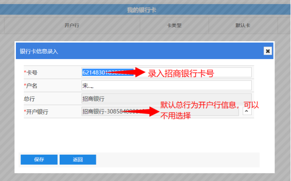 (2)录入卡号信息