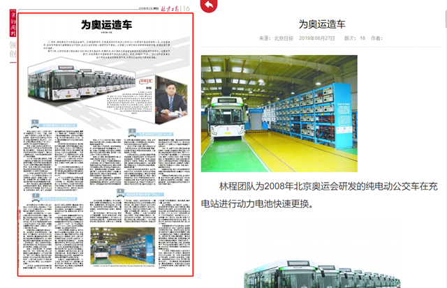 研发机械式自动变速系统,解决换挡平顺性难题;发明可更换锂离子电池系统,为电动公交车24小时不间断运行提供技术支撑;攻克动力电池管理及高压安全,为运行安全提供保障……北京奥运会前夕,为了圆满完成任务,林程团队吃住在车厂,夜以继日地论证、调试,攻克一个又一个难关之后,终于成功研制出具有世界先进水平的奥运电动大客车,并建成了世界上最大的公交换电站。