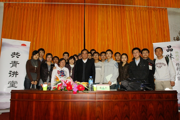 4月8日晚7点,共青讲堂第65期在中关村校区中心教学楼一层报告厅准时开讲,神舟一号到神舟五号的火箭系统总指挥、我校杰出校友黄春平老师应邀作为主讲嘉宾,在近两个半小时的讲座中,黄老回忆了当年他在北京工业学院的峥嵘岁月,并和同学们探讨了“中国飞天梦想”的系列话题。