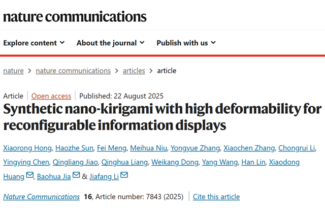 北理工团队在纳米剪纸像素化可重构信息显示...