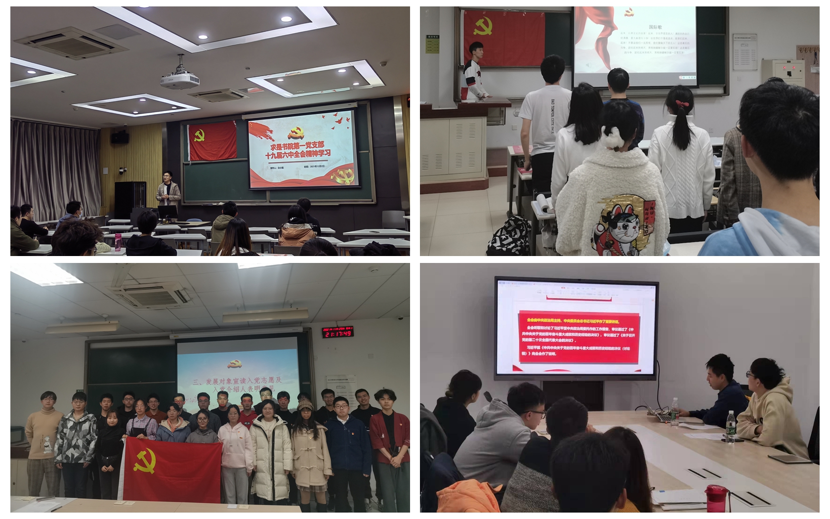 为深入学习贯彻党的十九届六中全会精神,自11月12日至12月10日,书院党委精心组织、加强领导,在全书院党委范围内开展党的十九届六中全会精神专题学习。书院党委理论中心组于12月2日召开理论中心组学习会议,专题学习党的十九届六中全会精神。除召开党支部书记会议进行集中学习外,各党支部还采用灵活多样的形式,积极组织全体党员进行学习,现已做到书院党委700余名党员全覆盖。