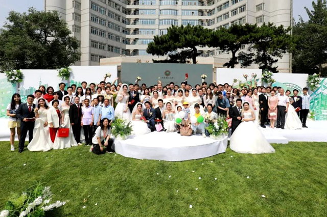 6月18日上午,由校团委主办、校研究生会承办的2023年北京理工大学研究生毕业集体婚礼在中关村校区中心花园草坪举行。
