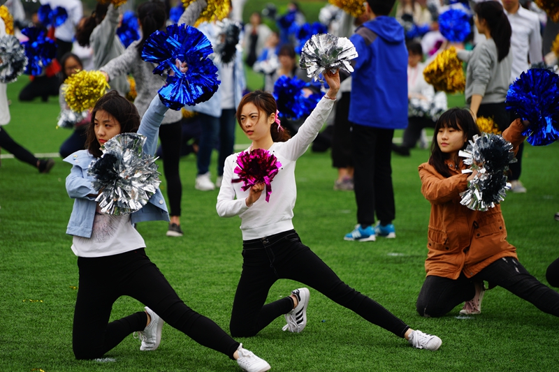 啦啦操表演队的640名同学分别来自16个不同学院。表演队成员以大一大二的学生为主,还有一些是喜爱啦啦操舞蹈的三年级同学。“本届运动会开幕式集体表演项目中,啦啦操表演团队是人数最多的队伍。”学校体育部王娟老师已经带领同学们进行了一个多月的训练,“啦啦操项目的节奏感强、动作干净利落,配合音乐和队形变化,能充分表现出同学们的青春活力。”