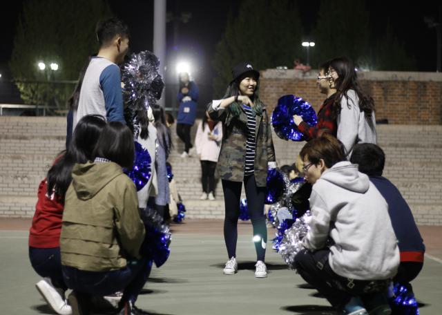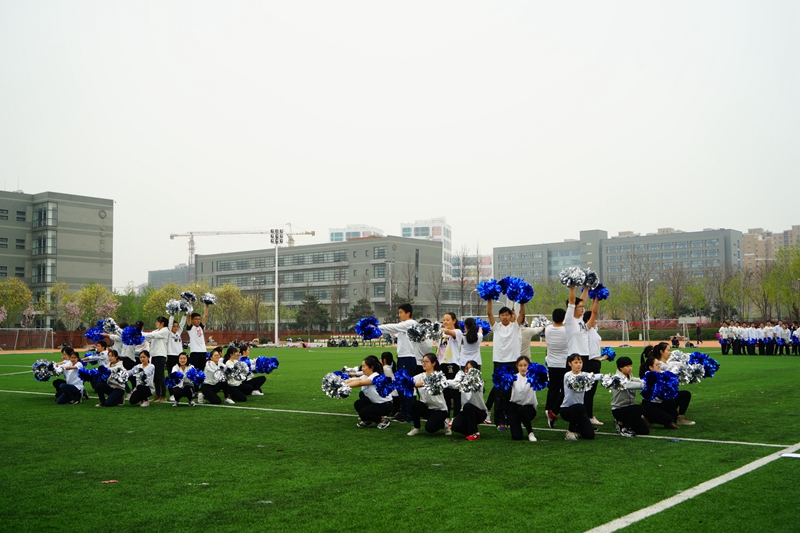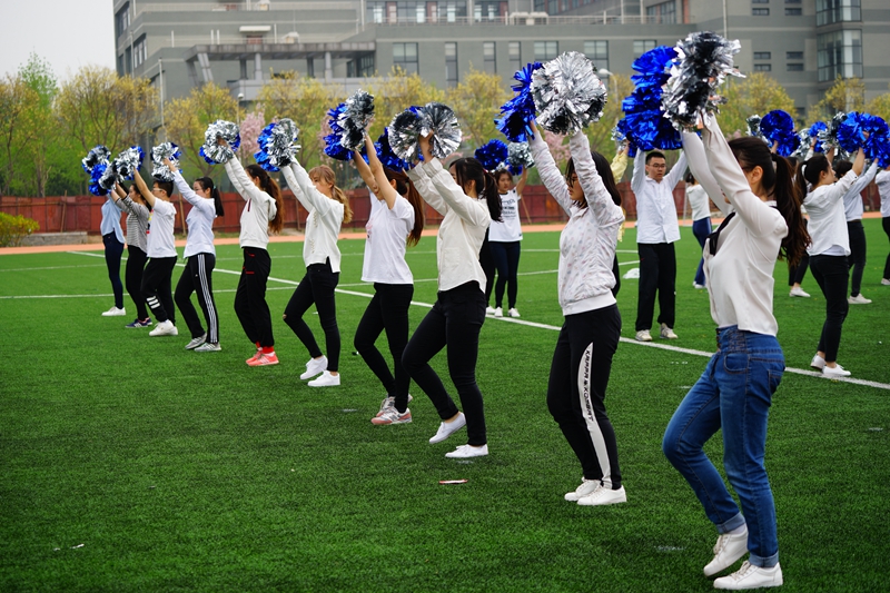 作为一项普及性极强,集舞蹈、体操、音乐、健身于一体的集体体育项目,啦啦操集体表演早早就被确定为第55届首都高校田径运动会开幕节目。规定动作、方阵走位以及适应音乐编排节奏都需要多次练习才能达到一致协调的效果,“我们第一次训练是3月18日,先对各学院的骨干成员进行了培训。”王娟老师说,“之后由骨干成员带领各学院的同学先进行学院内部的培训和练习。”