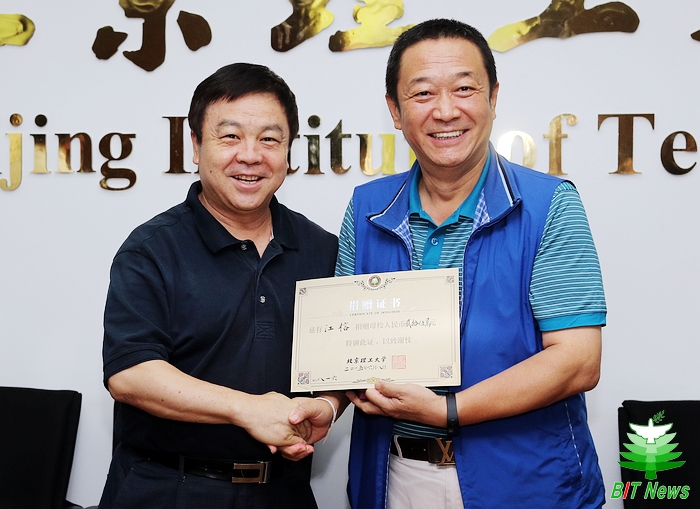 6月8日下午,北京理工大学在中关村校区二号楼233会议室举行“大型天象仪”校园雕塑捐赠仪式。北京电影学院党委书记、44771班校友侯光明,北京月坛大厦房地产开发有限公司董事长、43791班校友江榕,北京恩吉威机电科技发展有限公司总经理、43791班校友郭小燕,北京九城口岸软件科技有限公司董事长、42811班校友王双,北京波特优品经贸公司董事、44811班校友赵卉玲,中软国际公司董事局主席、44811班校友陈宇红,学校常务副校长、教育基金会理事长杨宾,党委副书记、副校长、教育基金会副理事长、秘书长项昌乐,学校原党委书记、教育基金会理事焦文俊以及相关单位代表出席捐赠仪式。