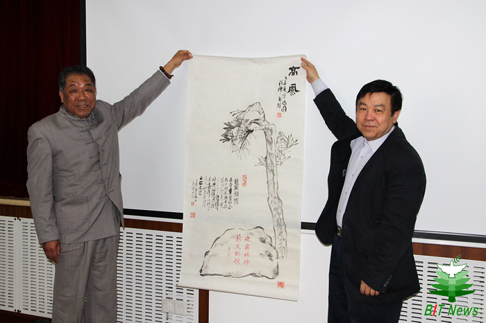 最后焦文俊谈到,当年京工书画社的成立对于学生发挥艺术特长,在艺术氛围中的成长具有积极的意义。他强调,盛自强校友将自己多幅书画精品捐献给母校,这在校友感恩母校活动中尚属首次,相信盛自强校友情系理工的热情将感染更多的书画校友投身到母校校庆活动中。